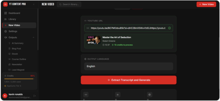 YT Content Pro is an innovative AI-powered tool that transforms any YouTube video into a fully structured, ready-to-use digital product in just minutes. Instead of spending hours watching videos, taking notes, and writing from scratch, you simply paste a YouTube link, choose your desired output, and let the system handle the rest. From blog posts and ebooks to lead magnets and newsletters, everything is generated for you effortlessly.